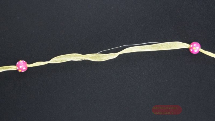 Band 10m/ 15mm, Organza/Holzperlen, rot