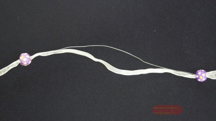 Band 10m/ 15mm, Organza/Holzperlen, violett