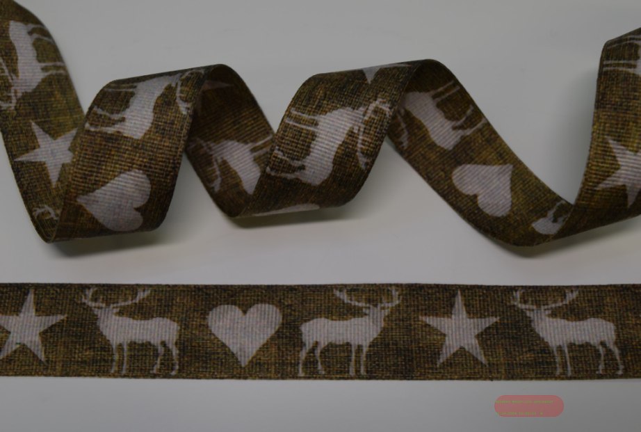 Band 25m/ 25mm, Hirsch-Sterne, h'braun