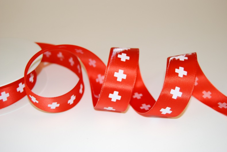 Band 25m/ 25mm, Schweizerkreuz, rot