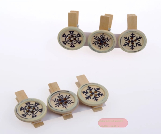 Klammer, Holzknöpfe 35mm - VE 3x 6 Stk, ecru