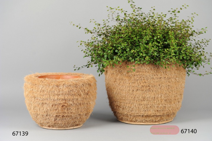 Korb, Cocus mit Tontopf - Ø34 x H23.5cm, natur